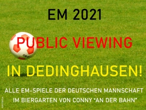 Ab Sa., 19.06. werden die EM-Spiele der deutschen Mannschaft bei Conny im Biergarten ‚An der Bahn‘ gezeigt.
