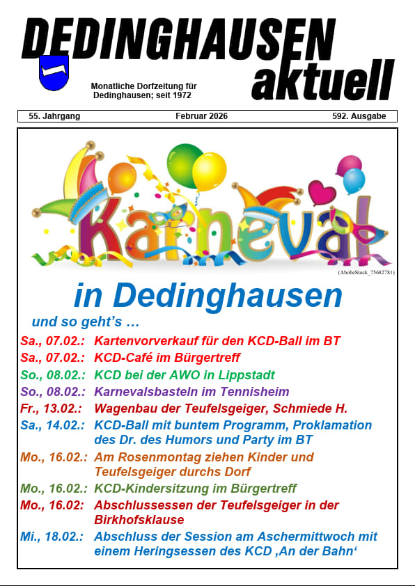 Du bist hier: Startseite1 / D-a2 / Archiv-20263 / Dedinghausen aktuell – Ausgabe Nr. 592 – Februar 2026